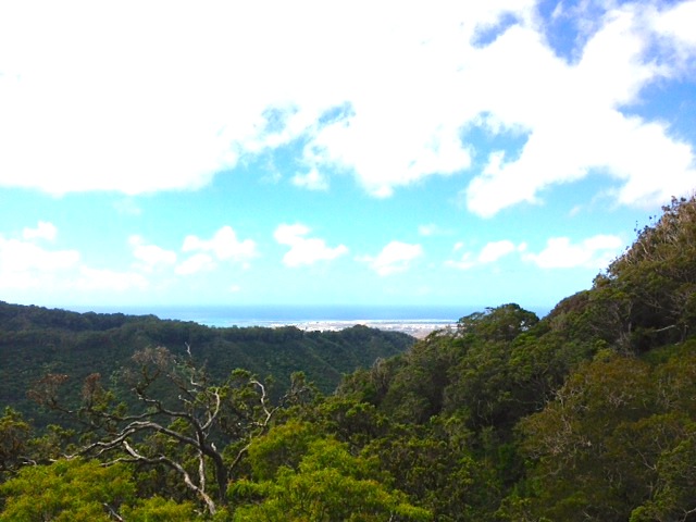 As we began our way towards the entrance of the trail, in the distance behind us we overlooked the town of Aiea and could see Pearl Harbor. Every so often we had to take a moment and stop to enjoy the sight.